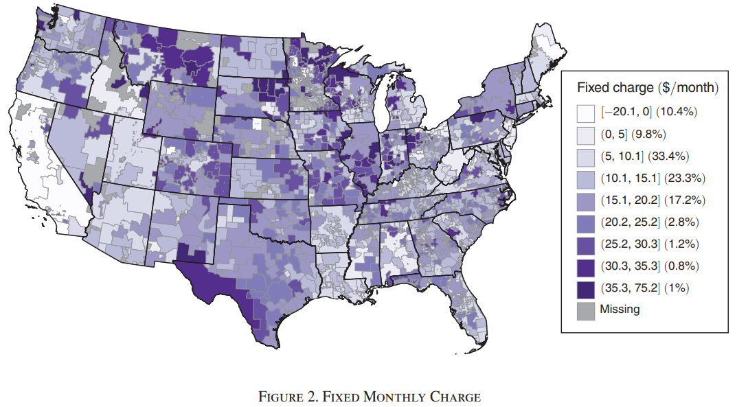 - Fixed charges \(\approx\) total system cost independent of quantity consumed, divided by anticipated sales.