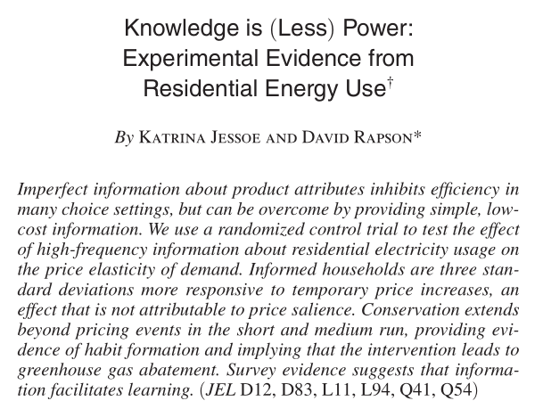 - Could get data on consumers who do and don’t have them installed, and compare their responses to peak price events